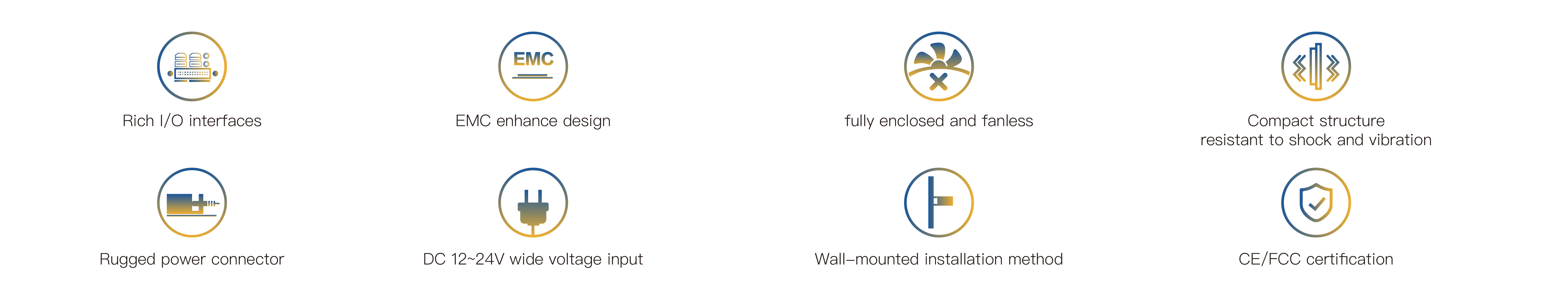 EPC-2832 is a fanless industrial computer based on the IntelRIntel Core i3-1115G4 high-performance processor. Supports HDMI display interface. The product is equipped with rich I/O interfaces and has 2 Intel GbE gigabit network ports. 6 USB3.0 ports,4 optional USB2.0 interfaces,1 RS232/RS422/RS485 port,1 RS232 port,4 optional RS232 serial ports. 1 1*MINI-PCle expansion slot for expanding 3G/4G modules,1 *M.2 expansion slot for expanding wireless WIFI,1 M.2 hard disk interface for supporting SATA protocol SSD. The system IO interface is equipped with an EMC circuit, ensuring the reliability of the product and a lower failure rate. The product's appearance design is exquisite and robust. The large-area aluminum fin design quickly dissipates the heat of the processor. The fanless and fully enclosed structure effectively prevents dust from entering, ensuring the product operates reliably for a long time in harsh industrial environments. The whole machine is powered by DC12V to 24V. All interfaces are designed to be fastened tightly and have passed CE/FCC certification. It can be applied to harsh industrial sites. The operating system supports Windows10 and Linux.