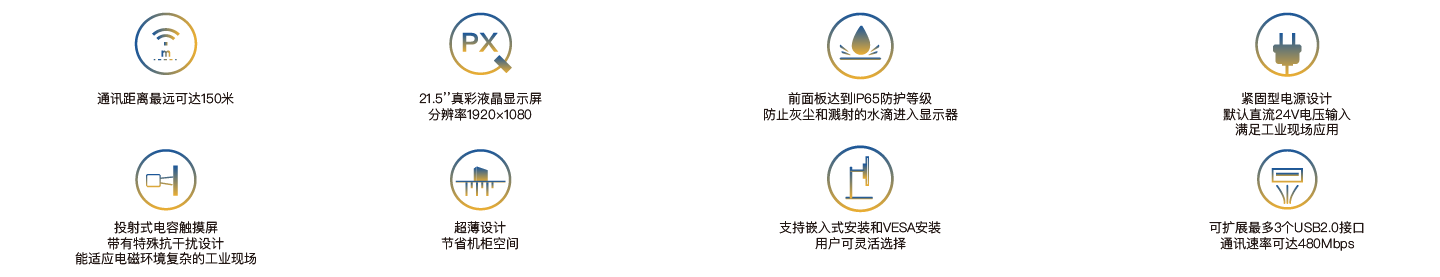 PD-8621是一種高性能工業(yè)遠(yuǎn)傳觸控顯示面板,配備21.5”,分辨率為1920x1080的高清液晶顯示屏,支持PD-Link顯示接口;觸控屏幕采用多點(diǎn)投射式電容觸摸屏,。顯示與觸摸部分有特殊抗干擾設(shè)計(jì),可有效抵抗工業(yè)現(xiàn)場(chǎng)大功率電機(jī)、伺服等干擾,保證良好的顯示效果與觸控體驗(yàn),適應(yīng)各種電磁環(huán)境復(fù)雜的工業(yè)現(xiàn)場(chǎng)。